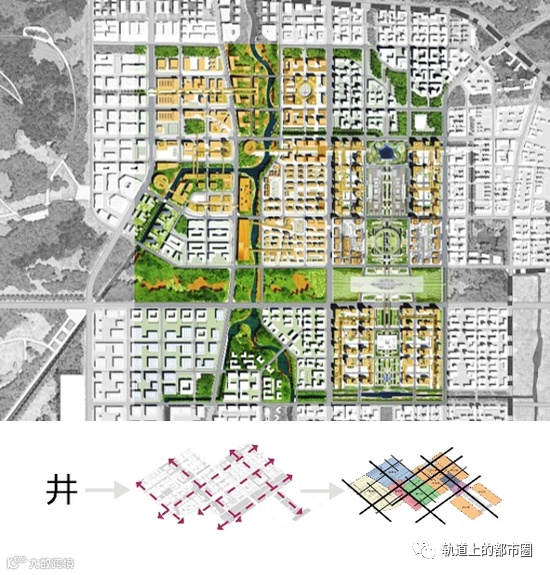 规划亮点:“廊+坊”。规划设计采用“廊+坊”的整体思路,通过绿廊、轴廊、连廊等结合不同功能街坊形成临空经济区独特的空间特色。根据不同地区的功能和空间特点,分别塑造“川”、“回”、“曲”、“井”四类各具特色的“廊+坊”空间形态格局。