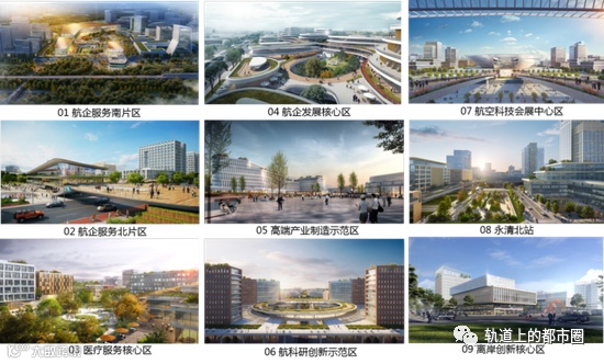 在整体控制的基础上,针对功能核心及关键风貌节点,该方案划定了9处重要区域,主要包括航企服务南片区、航企服务北片区、医疗服务核心区、航企发展核心区、高端产业制造示范区、科研创新区示范区、航空科技中心区、永清北站、离岸创新基地9处,重点体现各个区域的空间造型,体现不同功能区的场景和氛围。