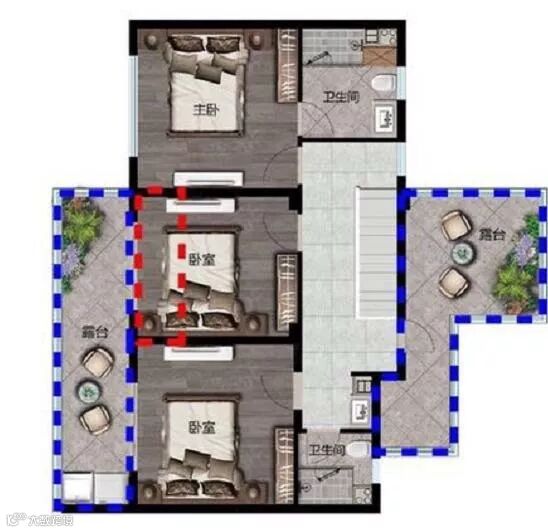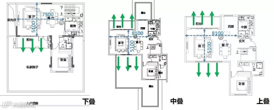 复合三叠墅:在纵向上升级三叠墅,进一步分割纵向面积。