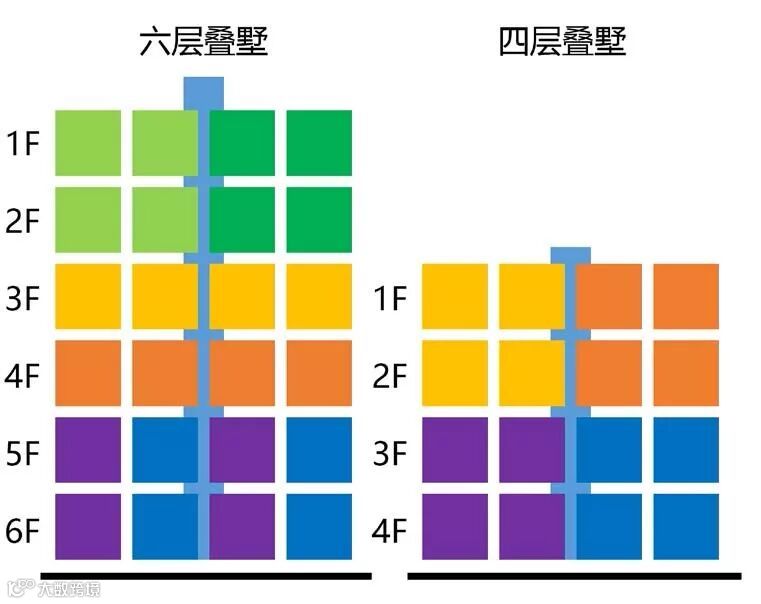 二、做6F 叠墅,但3F 和4F 单独做成平层,主动降低产品溢价率,用增加产品多样性的方式来保证去化。