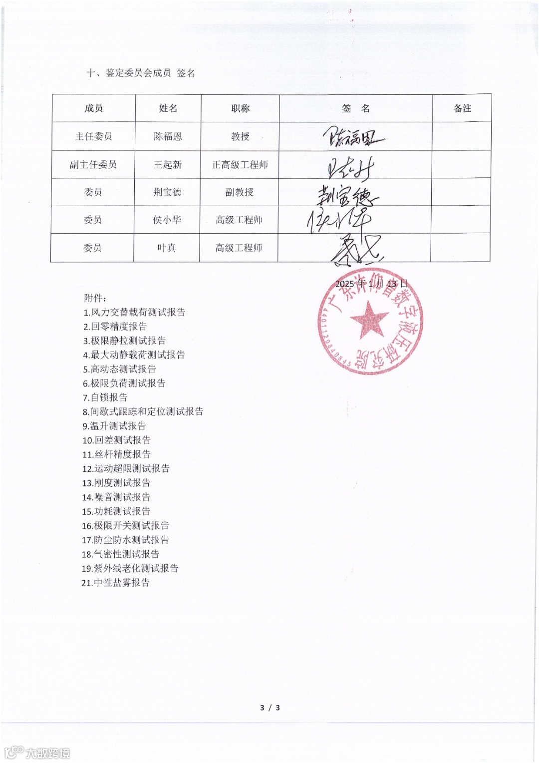 3. 测试分析报告(由国家认可的专业检测单位出具)