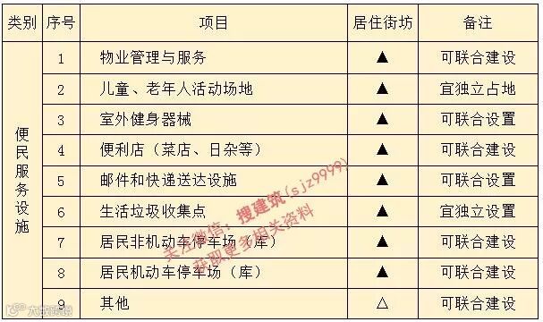 《城市居住区规划标准》附录C.0.3 居住街坊配套设施规划建设应符合表C.0.3的规定。