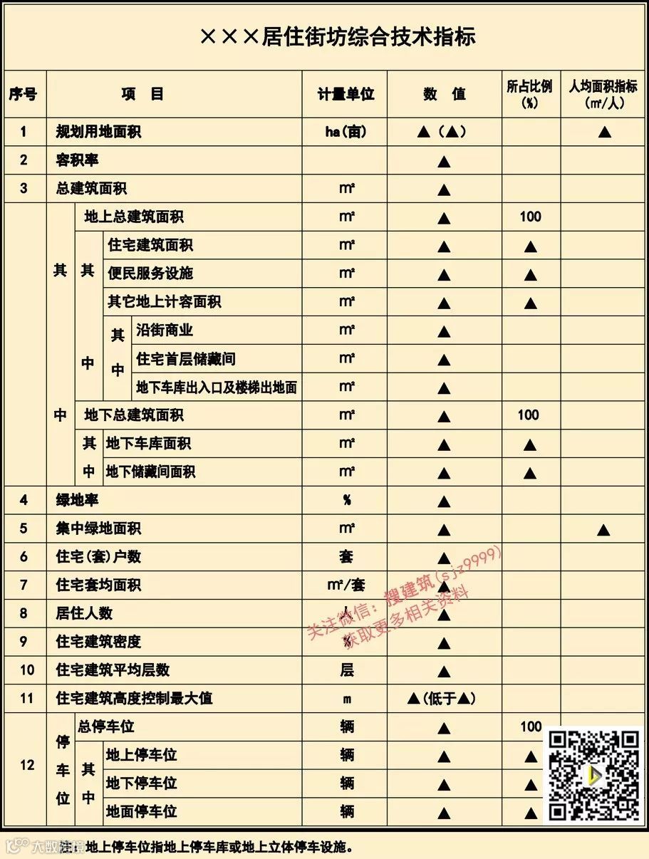 居住街坊综合技术指标
