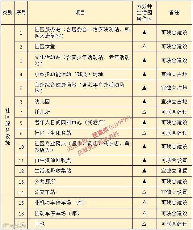 注:1 ▲为应配建的项目;△为根据实际情况按需配建的项目;