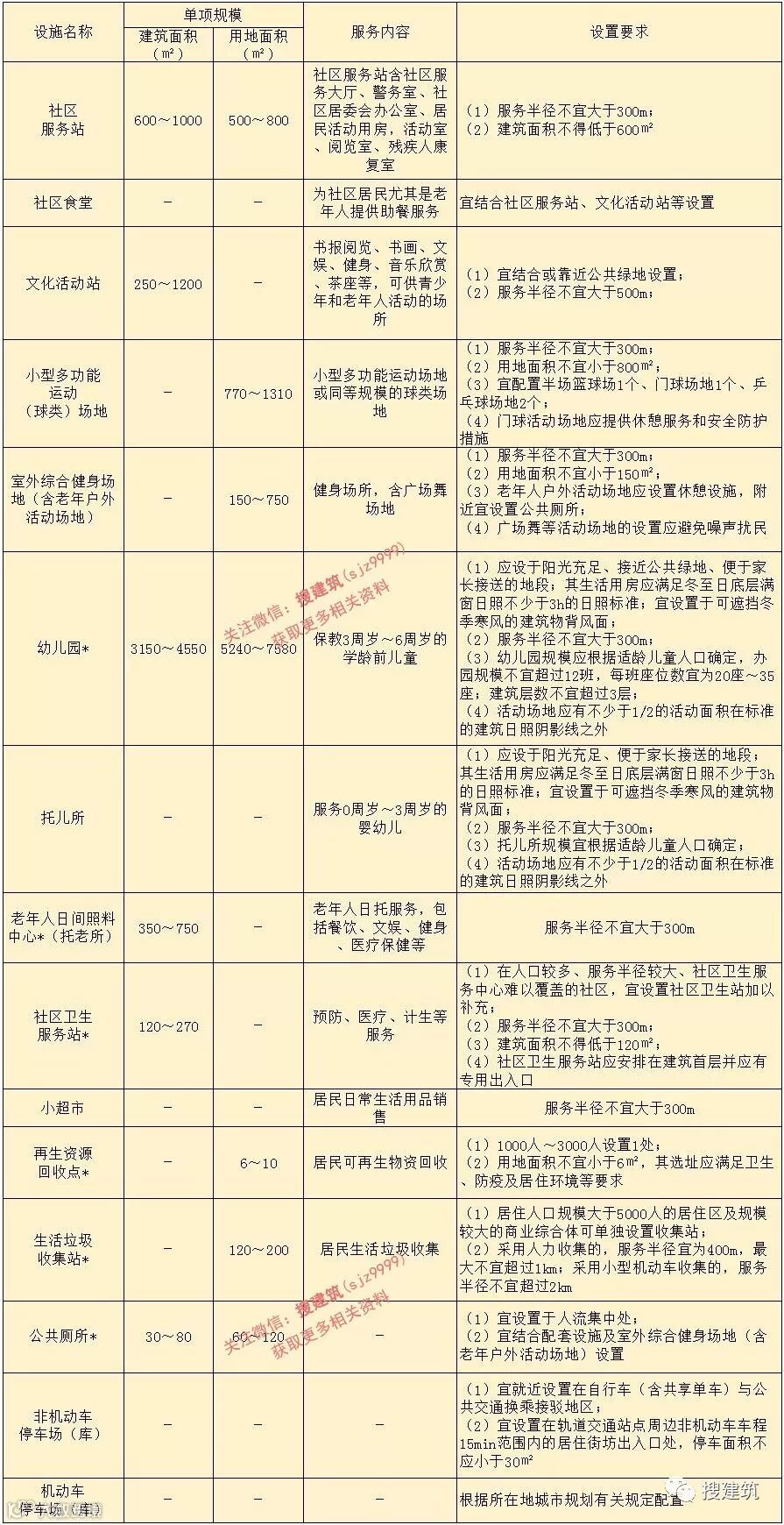 注:1 加*的配套设施,其建筑面积与用地面积规模应满足国家相关规划和建设标准的有关规定;