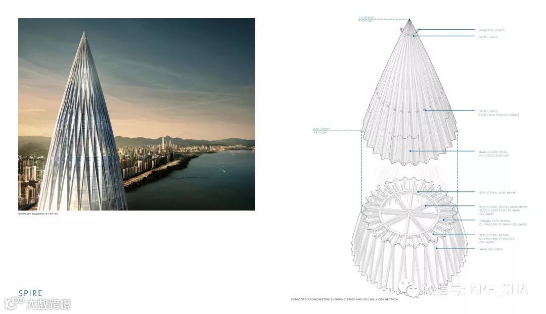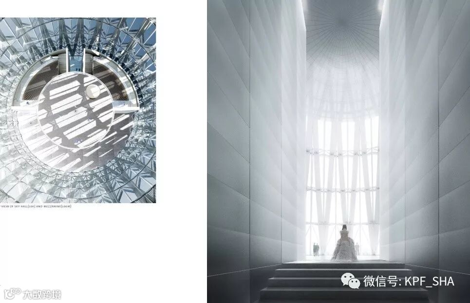塔顶的“空中大厅”可提供多种商务配套功能,美轮美奂的圆锥形的空间以及精美的螺旋交叉结构令人惊叹,这也是世界上少有的人们可以到访塔楼绝对制高点的超高塔设计。