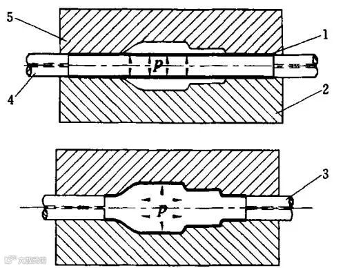 内高压成形技术是用管材作为坯料,通过对管腔内施加液体压力及在轴向施加负荷作用,使其在给定模具型腔内发生塑性变形,管壁与模具内表面贴合,从而得到所需形状零件的成形技术。