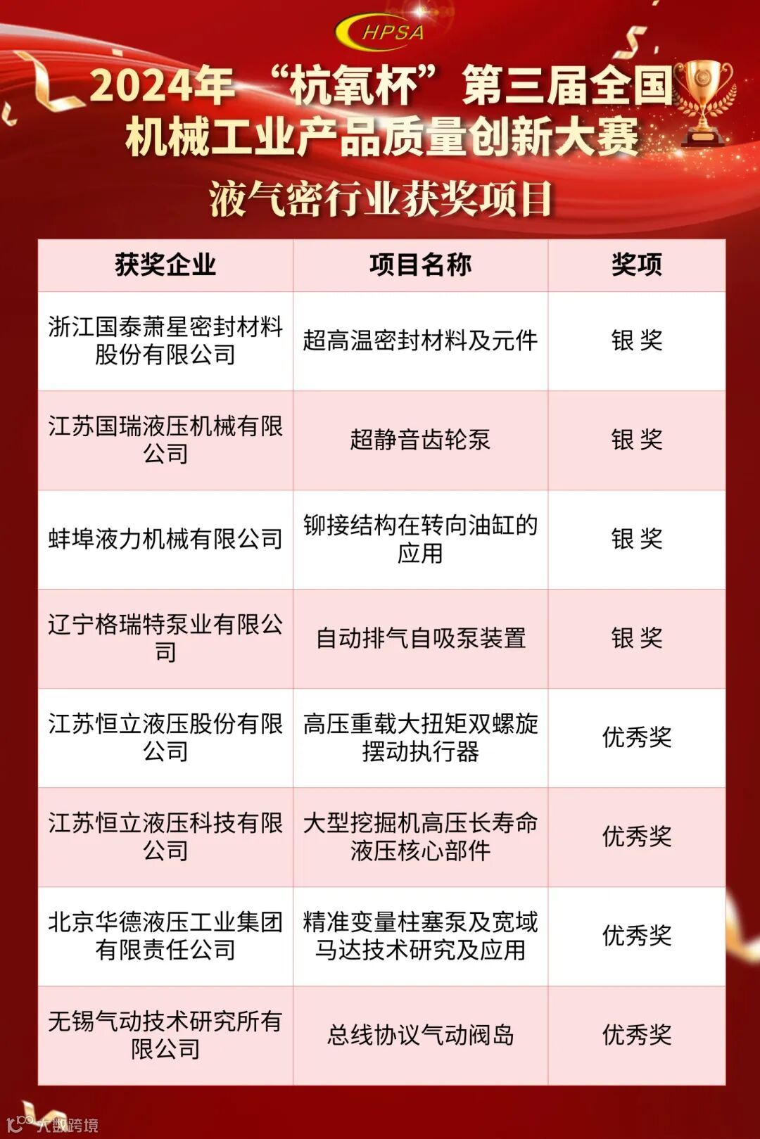 液气密行业获奖项目