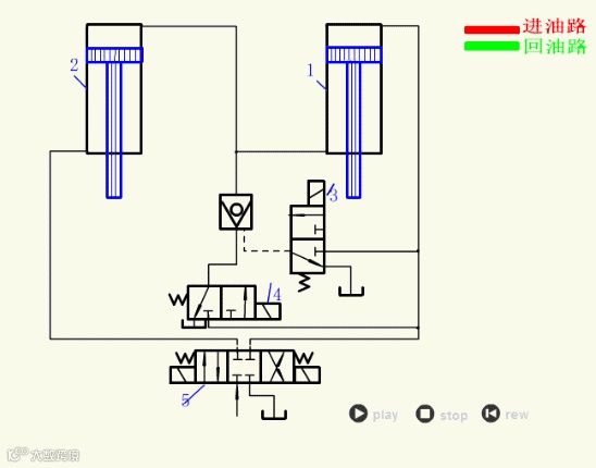 47.行程开关和电磁换向阀控制的顺序运动回路