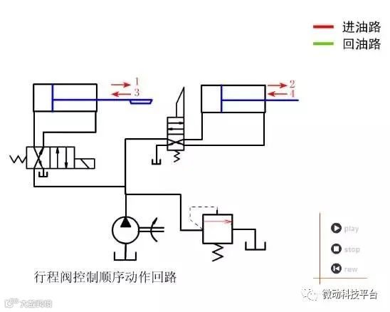 29.行程阀控制顺序动作回路