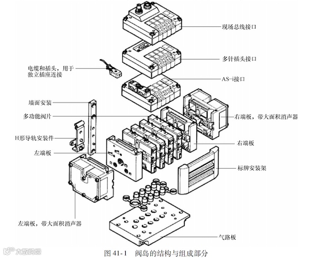 模块式阀岛的推出,有助于用户进一步提高生产效能。因为模块化设计,使阀岛具有不同组合,可以配置生成多样化的方案来满足用户的不同需求,从而使用户以尽可能少的投人,生产尽可能多样化的产品,如图41-3b 所示。模块化阀岛的基本结构具有如下特征: