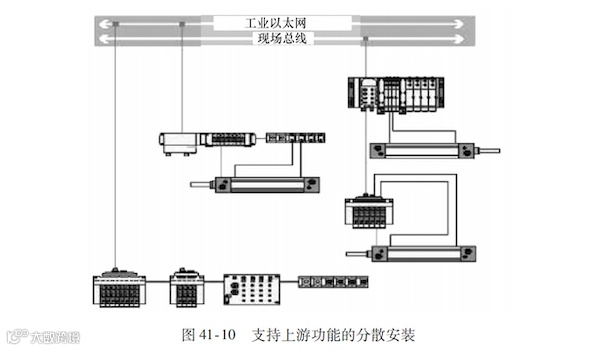 一些单项功能,如重新定位、加载、卸载、传输等动作都是设在系统或设备的外部,例如机器人抓手或者工具架,输送线上的制动和分选通道等,往往处于整个系统功能的上游。针对这类情况,集成现场总线接口如AS -i,或者设备总线接口如10- Link的小型阀岛和电终端就成理想的解决方案,如图41-10所示。