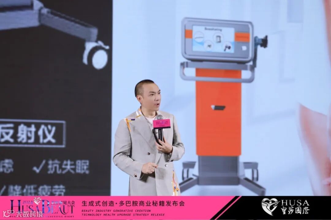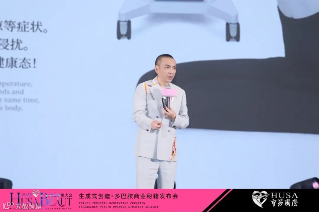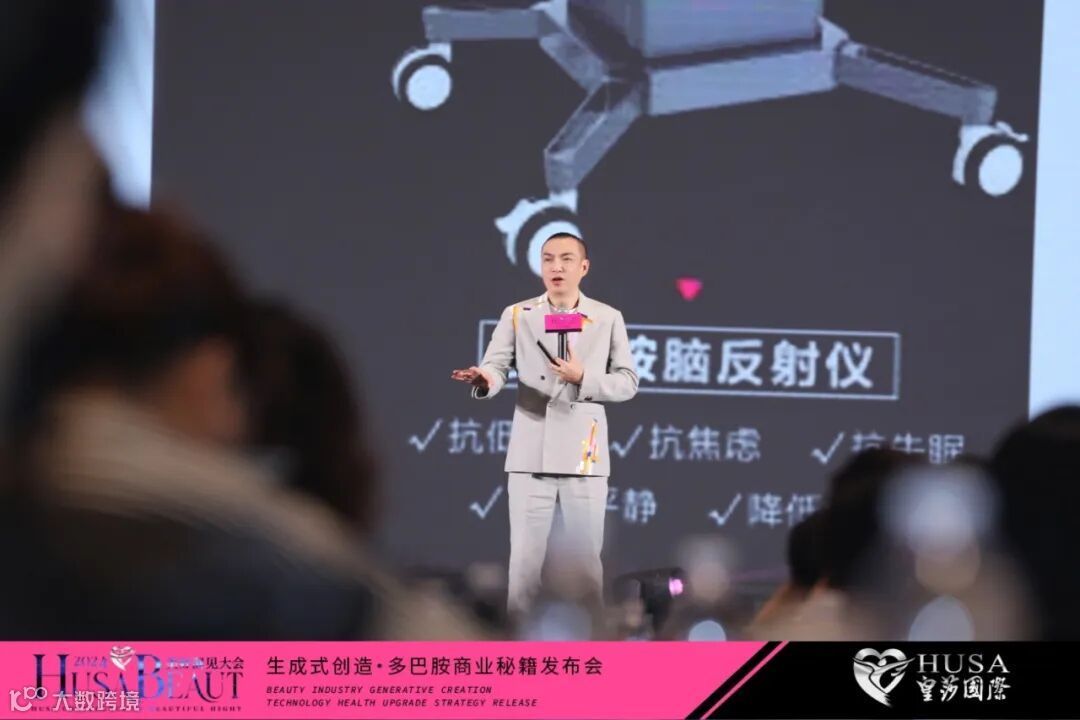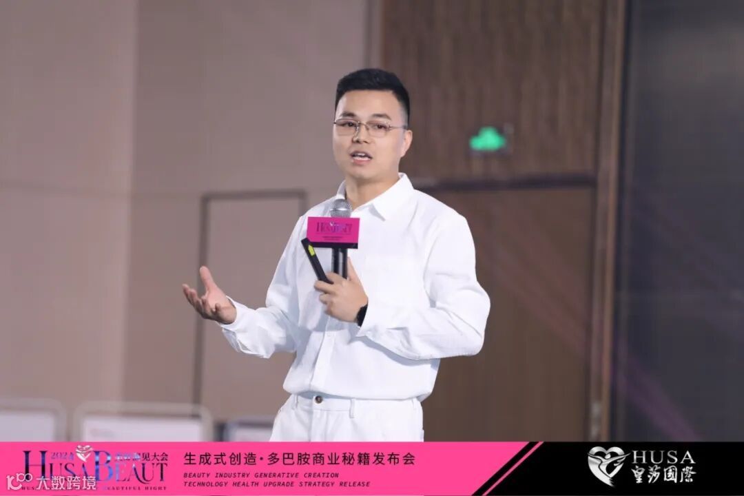 皇莎集团董事长-陶伟先生在会上分享多巴胺商业秘籍的思维逻辑。