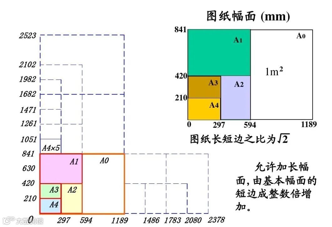 图纸幅面按照国家标准(GB/T 14689-1993)分为A0至A4等多种规格,每种幅面均有固定的尺寸和长宽比(通常为2:1)。