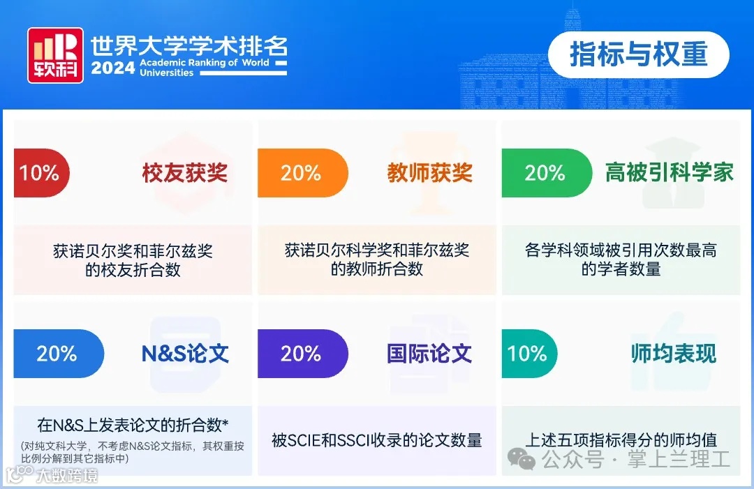 软科世界大学学术排名(简称ARWU)是世界范围内首个综合性的全球大学排名,2003年首次发布,今年发布的是第22版。ARWU以其评价体系的客观和透明引领了国际大学排名的浪潮,是全球最具影响力和权威性的大学排名之一,在世界各地被广泛报导和大量引用,许多政府和大学从该排名出发,分析比较本国、本校的情况,采取各种举措来提升大学的国际竞争力。