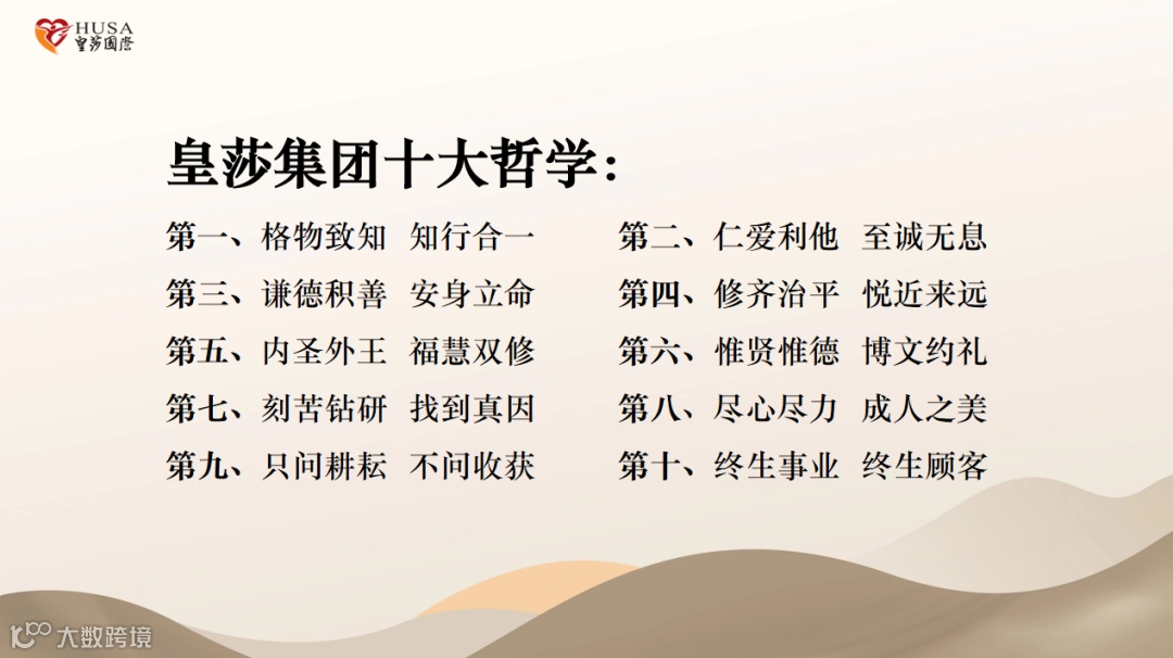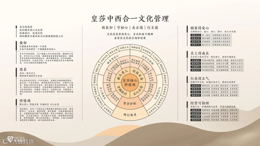 在坚持与国同频,以社会主义核心价值观为引领与传承中华优秀传统文化的前提下,皇莎建立了符合自身企业实情的文化体系: