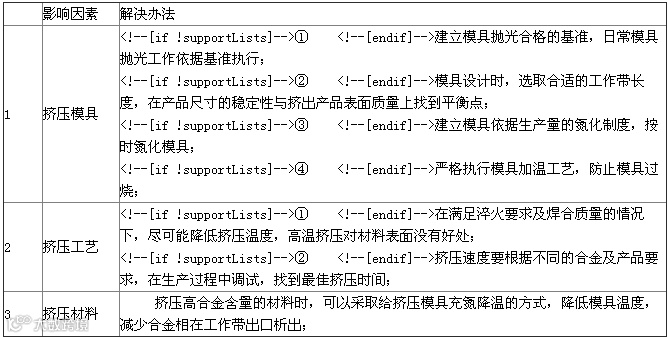 通过对模痕产生原因的分析,我们可以试着分析防止或减少模痕产生的办法(表1)。