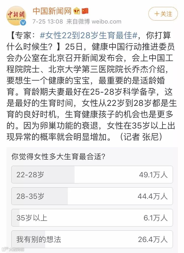 近期,中国新闻网公开了女性生育的最佳年龄阶段是22到28岁之间。