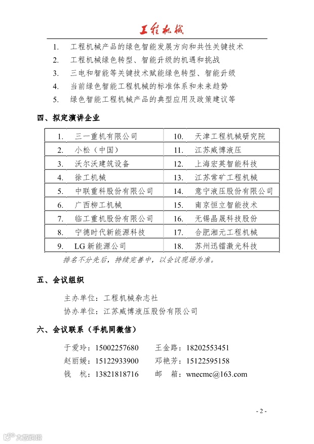 会议相关内容和进程,敬请关注“工程机械杂志”(chinacme1964)公众号。