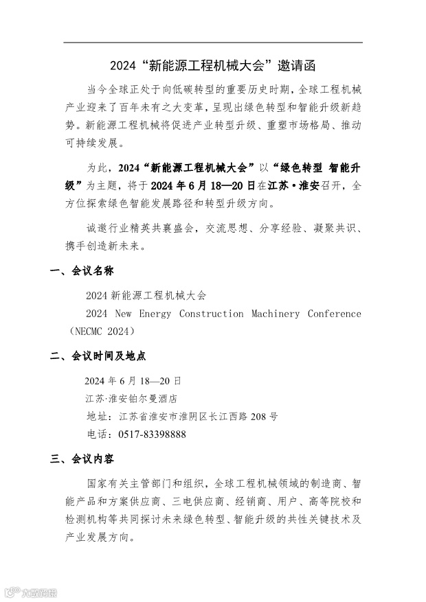 为此,2024“新能源工程机械大会”以“绿色转型 智能升级”为主题,将于2024年6月18—20日在江苏·淮安召开,全方位探索绿色智能发展路径和转型升级方向。
