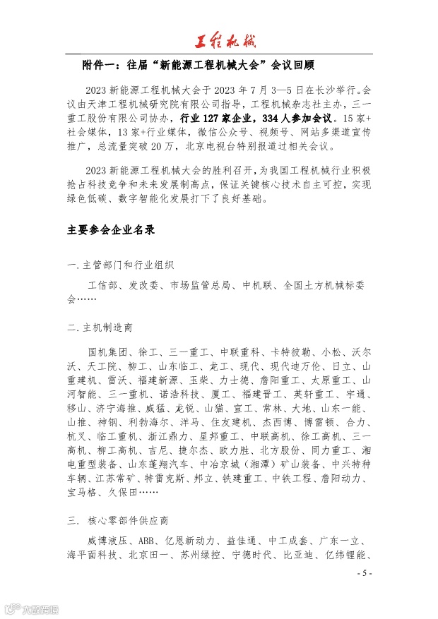 国家有关主管部门和组织,全球工程机械领域的制造商、智能产品和方案供应商、三电供应商、经销商和用户共同探讨未来绿色转型、智能升级的共性关键技术及产业发展方向。