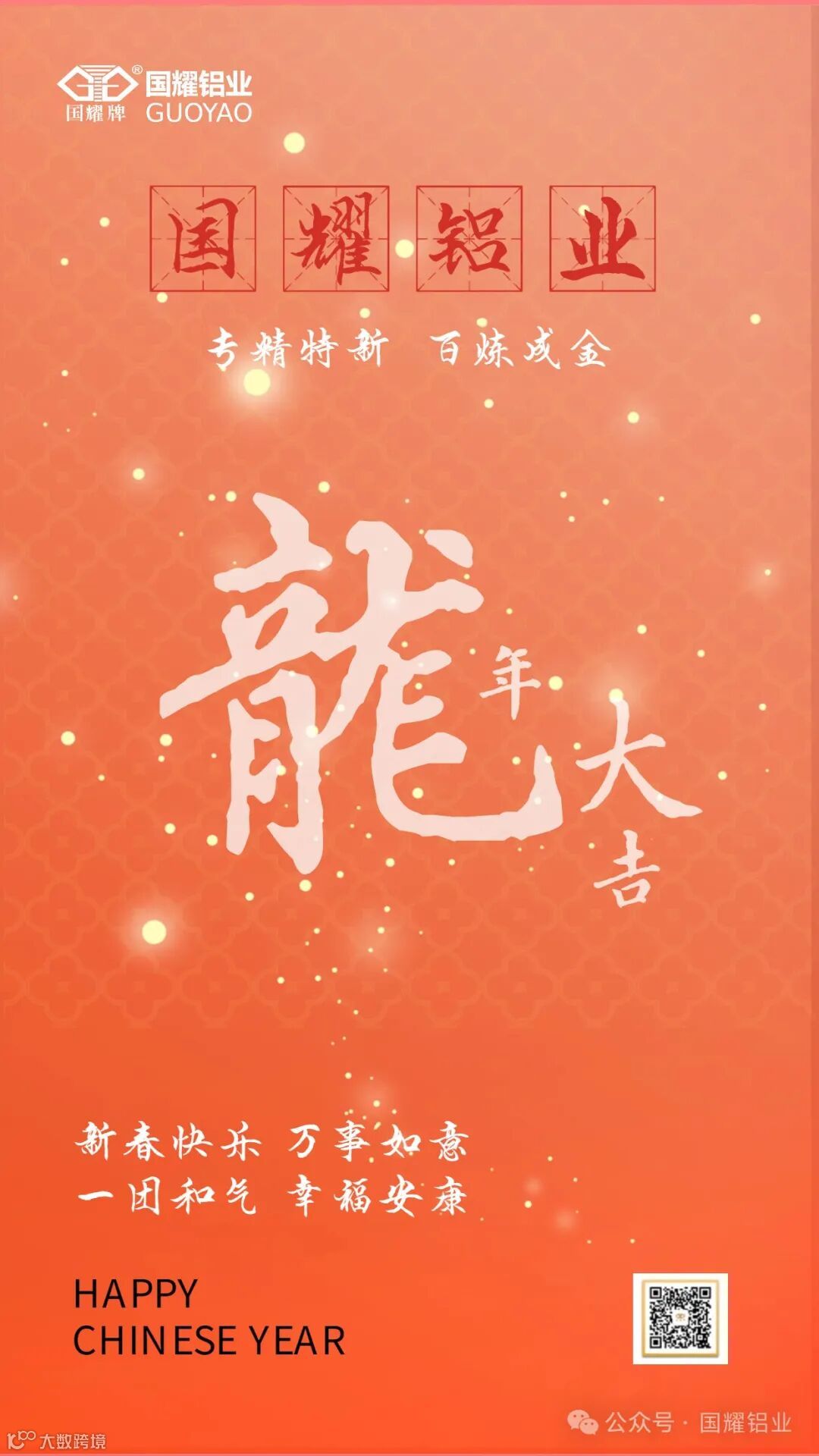 在这辞旧迎新的美好时刻国耀铝业向广大合作伙伴及家人朋友们致以新年的祝福!祝您新年快乐!福暖四季、顺遂安康!