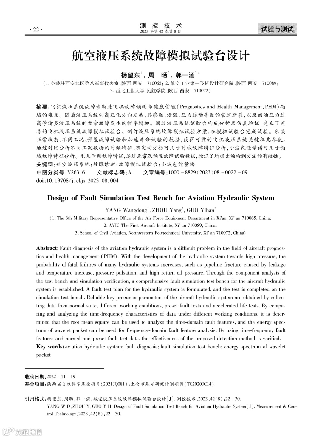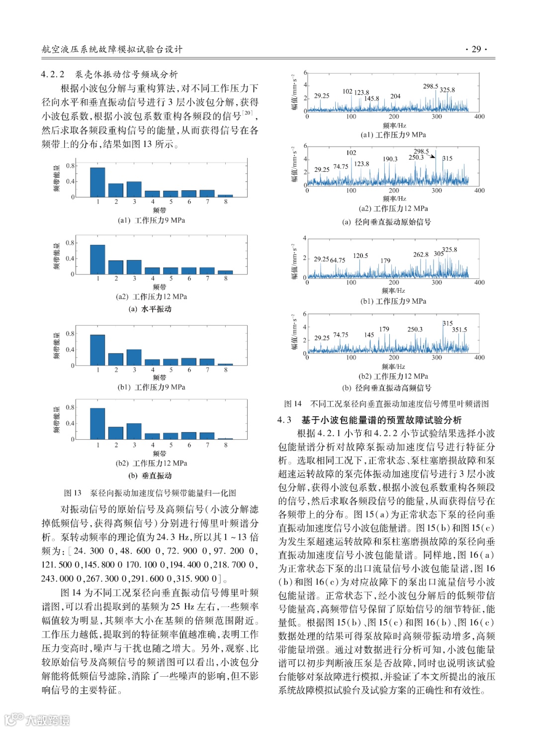 飞机液压系统故障诊断是飞机故障预测与健康管理(Prognostics and Health Management,PHM)领域的难点。随着液压系统向高压化方向发展,其渗漏、增温、压力脉动导致的管道断裂,以及回油压力过高等诸多液压系统的致命故障发生的概率增加。通过液压系统试验台构成分析及仿真验证,建立了完善的飞机液压系统故障模拟试验台。制订液压系统故障模拟试验方案,在模拟试验台完成试验。采集正常状态、不同工况、预置故障试验和加速寿命试验的数据,获得可靠的飞机液压系统关键征兆参数。通过对比分析不同工况数据的时频特征,确定均方根可用于时域故障特征分析,小波包能量谱可用于频域故障特征分析。利用时频故障特征,通过正常及预置故障试验数据,验证了所提出的检测方法的有效性。