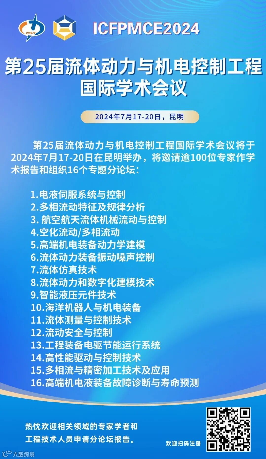 ICFPMCE2024第二轮通知 | 第25届流体动力与机电控制工程国际学术会议