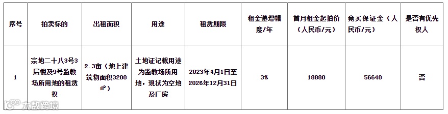 2、监教场所用地(非农用地)不同于普通建设用地,出租人在招租公告中已明确告知该不动产权证载明的土地(厂房)性质和用途,竞买人自愿参与竞拍视为其已了解相关土地使用规定并自愿承担风险,地上建筑物全部暂未办理房屋不动产权证。买受人不得以无法按照标的现状表述的用途使用标的而提出解除(撤销、无效)合同等请求。非农用地的承租人也应避免大型投资经营性开发建设,建议依照土地(厂房)现状继续使用。