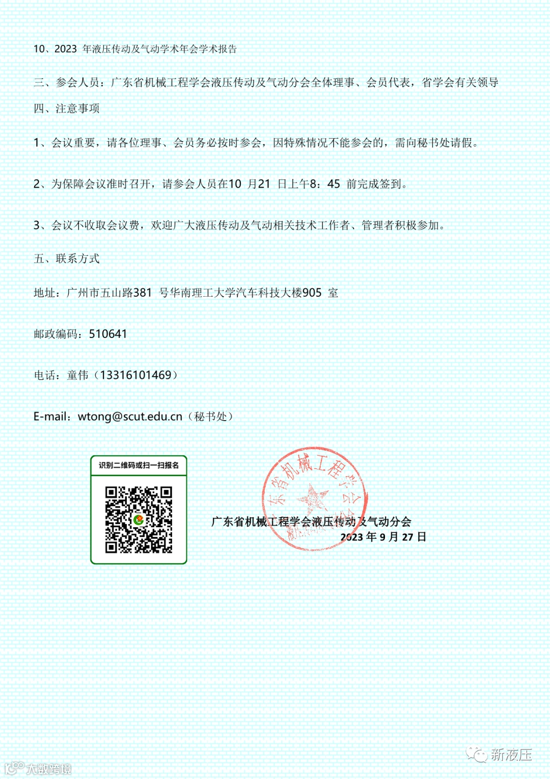 三、参会人员:广东省机械工程学会液压传动及气动分会全体理事、会员代表,省学会有关领导