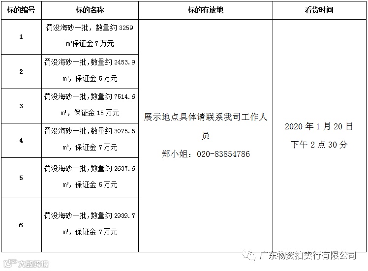 导读:广东物资拍卖行拍卖会:罚没海砂一批看货时间表
