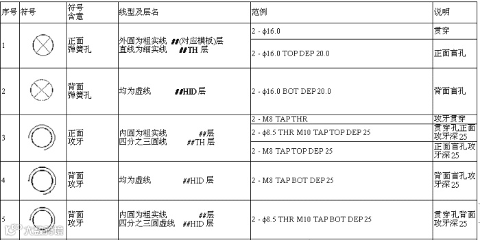 附件一 板零件图中常见孔的标准画法及其含意