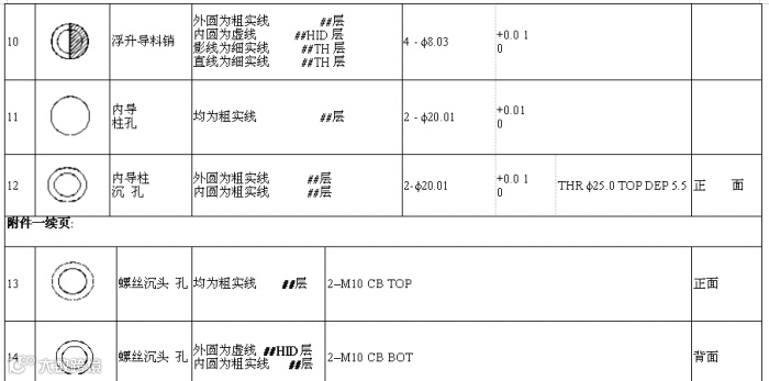 2. 板件图中要标注孔的代号并在注解中写明孔的大小,所放间隙及公差要求.加工方法由加工单位根据尺寸及形位公差确定,设计者不需要注解加工方法.