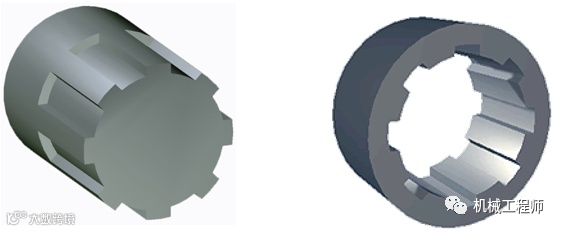 花键联接由内花键和外花键组成。内、外花键均为多齿零件,在内圆柱表面上的花键为内花键,在外圆柱表面上的花键为外花键。显然,花键联接是平键联接在数目上的发展。花键为标准结构。