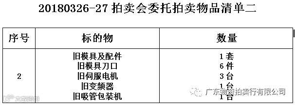2.旧模具及配件等一批(详见清单),竞买保证金:¥300元;