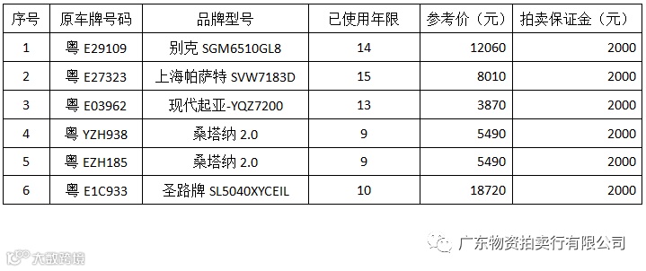 广东物资拍卖行有限公司拍卖公告