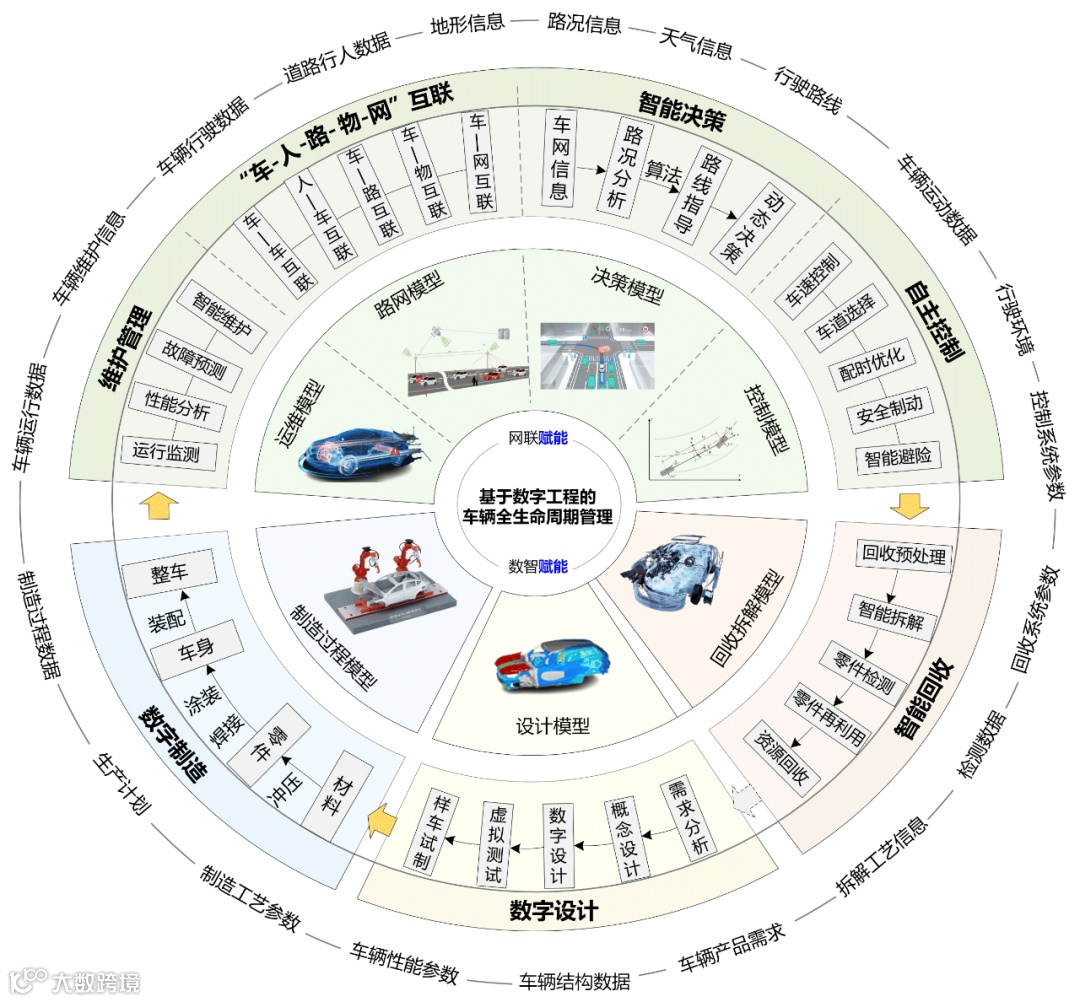 (1 ) 全信息汇聚融合 。产品或系统在规划、研究、设计、验证、制造、试验、使用、维护、报废全生命周期各环节都需要各类数据的直接参与,产品或系统本身也在全生命周期中持续产生新的数据,这些数据中蕴涵着产品或系统的组成成分、结构特征、时变特征、功能、性能、当前状态、历史过程、服务对象、结果反馈等诸多有效信息,对于产品或系统设计、制造、运维等的智能化尤为重要。因此,需攻克①海量多源数据实时汇聚与存储、②海量异构数据高效处理与深度融合、③基于融合数据的知识高质量挖掘、表示、存储和利用等挑战,实现产品或系统的全信息汇聚融合,为数字工程“数力”和“智力”的形成提供数据、信息和知识基础。
