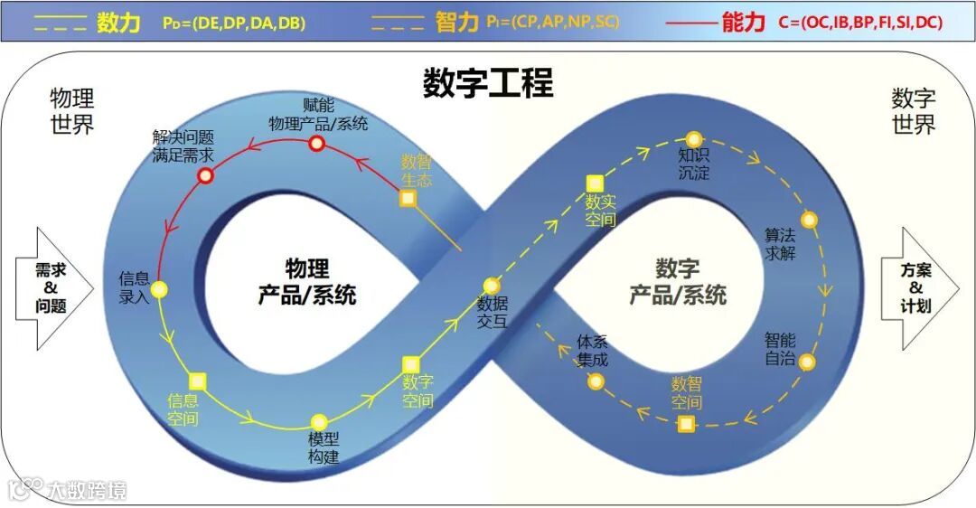 (2)数字工程不仅关注数字空间,还关注实际物理空间,更关注数实空间交互融合 。数字工程强调从物理世界的实际需求和问题出发,到数字世界中深入分析、开发功能、寻求突破,最终返回物理世界赋能物理对象。