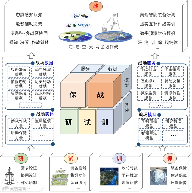 (2) 全要素、全过程、全功能 、全业务精准刻画。在数字空间中实现对物理对象深入分析、智能决策和能力提升的前提,是利用模型、数据等表现形式精准刻画产品或系统相关要素、过程、功能和业务。因此,需攻克①全要素模型精准构建、②全过程模型精准构建、③全功能模型精准构建、④全业务模型精准构建四个挑战,保证数字空间中的数字产品或系统完备可靠,并结合产品或系统全信息,为数字工程提供强大“数力”。