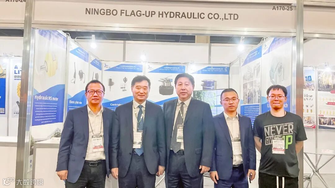 苏子孟、周卫东一行参观宁波弗莱格液压展位