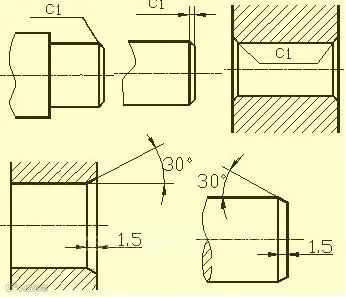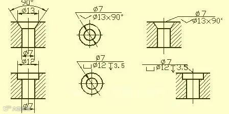 常见孔的尺寸注法(盲孔、螺纹孔、沉孔、锪平孔);倒角的尺寸注法。