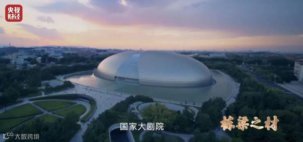 国家大剧院,由于选用轻质又耐腐蚀的钛合金做穹顶,整座建筑无需立柱支撑,外观还能长保金属光泽。