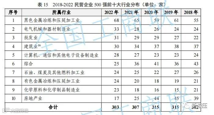 2022年,民营企业500强仍以制造业为主,企业数量322家,较上年增加21家。
