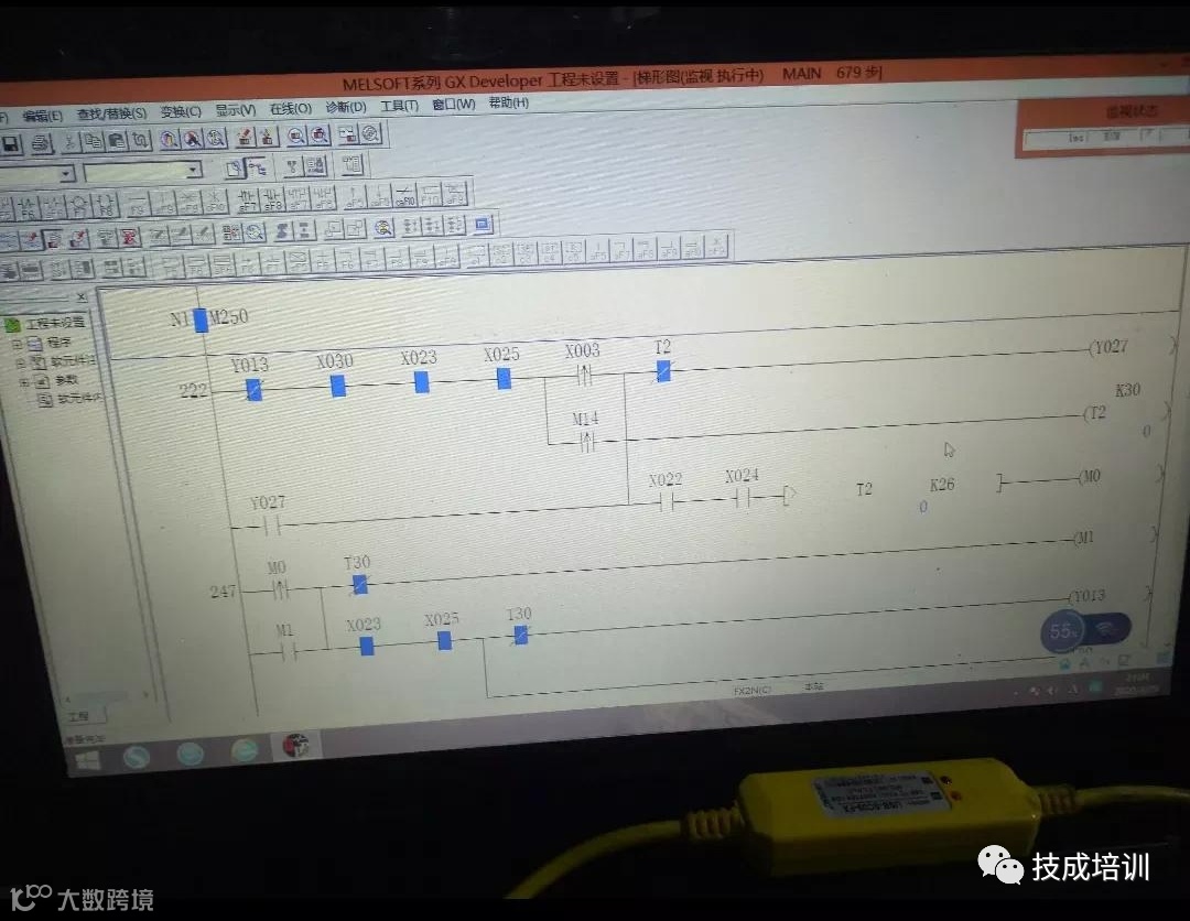 前面气缸上到位,磁性开关亮灯;后面气缸有时候差了那么一点没到位。查看PLC程序,写的是要X22和X24同时接通,还有个触点比较指令,条件满足才会输出液压阀动作完成移棒。