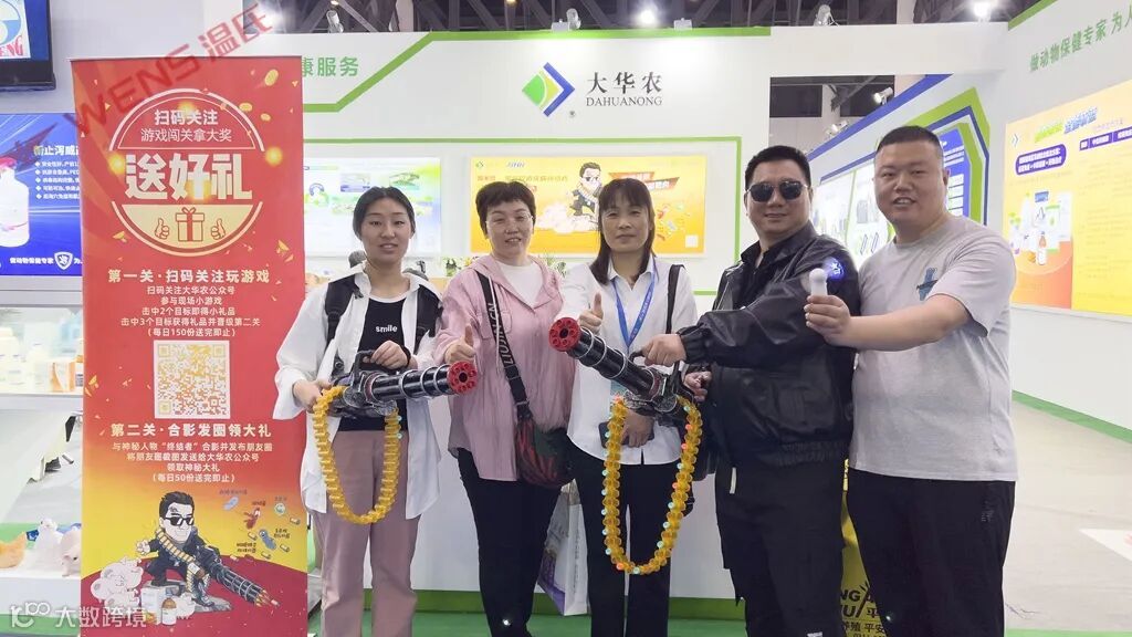 同时,大华农还展示了一系列明星产品,如新止泻威、加米欣、灭感宁、免球虫疫苗、兔特清、鸭特灵和诊断试剂等,并准备了丰富的礼品和游戏活动,为参观者带来愉悦的体验,让参展观众更深入地了解大华农的最新产品。