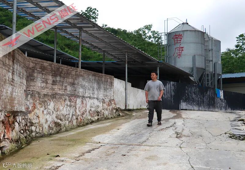 2019年2月,第二批猪进场了,黄康一个人独立负责养殖。为了提高养殖效率,降低劳动强度,2020年下半年,黄康用养猪赚来钱采购了一套自动料线系统,安装了料塔,只要按一下开关,饲料就能自动输送到料槽,养猪更加轻松了。