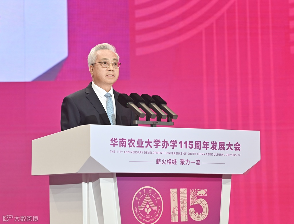 广东省人民政府党组成员陈良贤代表省委省政府向华南农业大学办学115周年表示祝贺。他指出,华农深耕南粤大地、牢记办学使命,为国家战略和区域发展作出了重要贡献。希望学校进一步增强