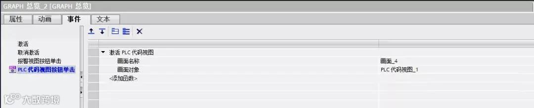 5)在事件中编辑“PLC代码视图按钮单击”,目的是出现问题时按下按钮时可以直接跳出对应的“画面4”,并在画面四中显示对应的PLC代码,如下图所示: