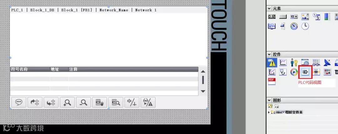 3)添加一个“画面4”,并在其中添加一个控件“PLC代码视图”,如下图所示: