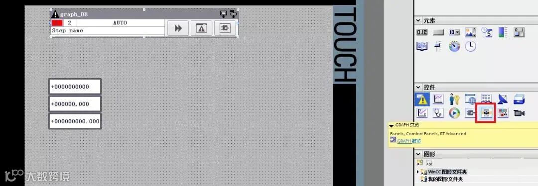2)在HMI中新建一个画面,增加一个控件“GRAPH总览”,如下图所示: